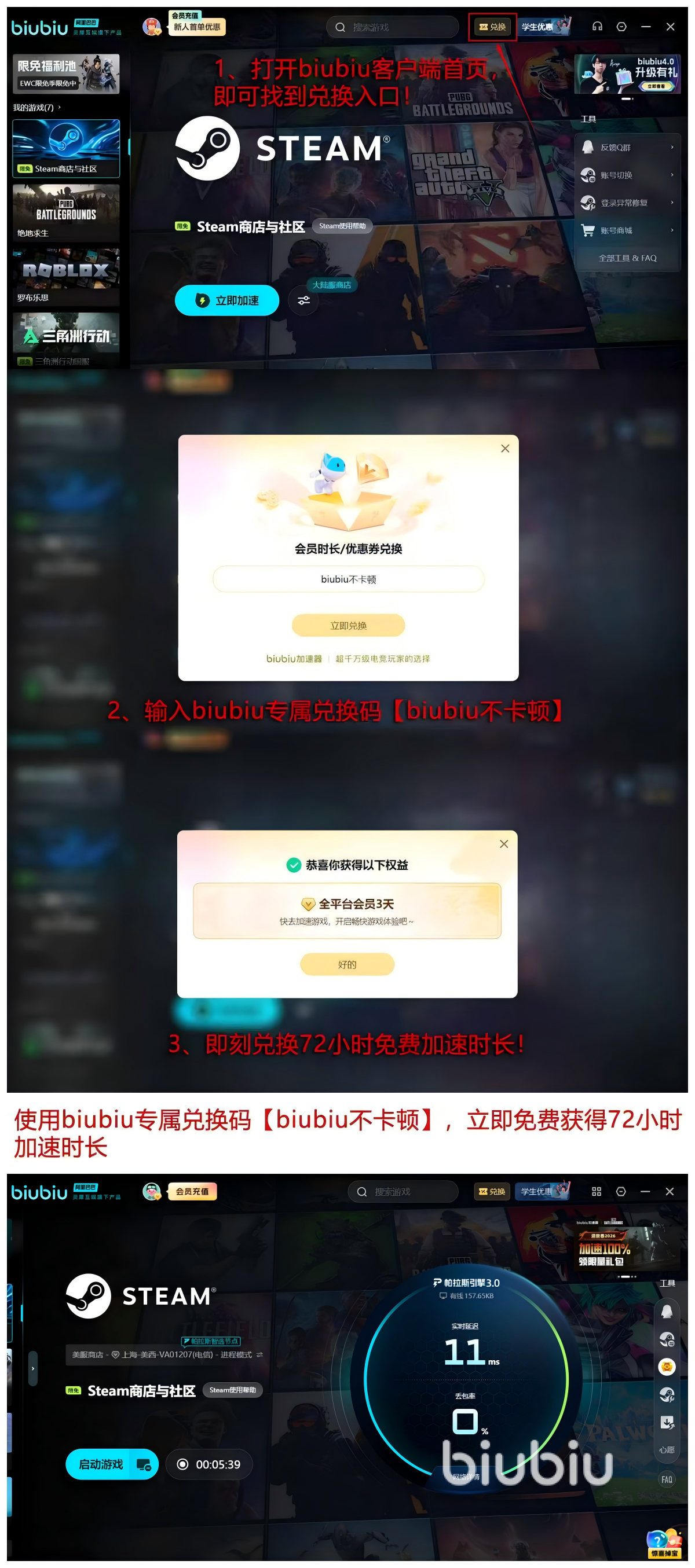 想要福利的各位注意了,输入【biubiu不卡顿】口令非常有用72小时轻松获取,累计新人获取的加速福利24小时,总计能够获得96小时的加速时间,这些时间足够各位率先体验一下加速福利了,能够满足进行战斗或者下载补丁更新版本等等需求,同时还能保留签到的兑换奖励,绝对是非常有用的常驻奖励。