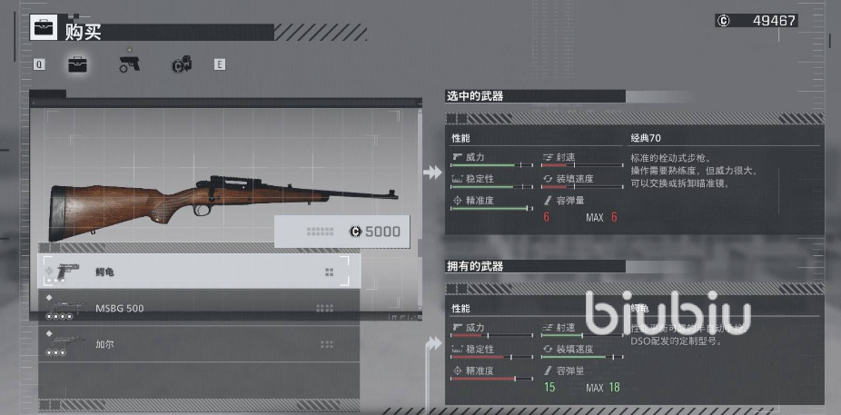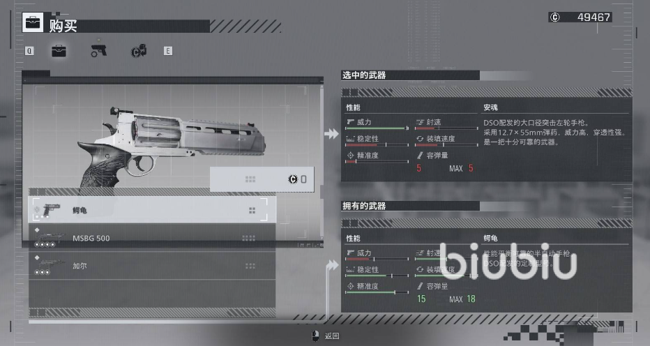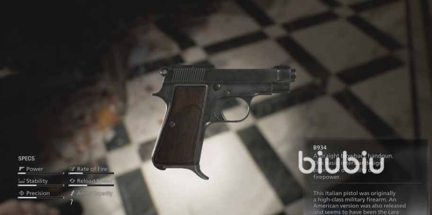 疗养院中切换到里昂视角的时候会自动装备它,射程远,单发子弹伤害高,在收集黑白浣熊先生的时候必会用到。