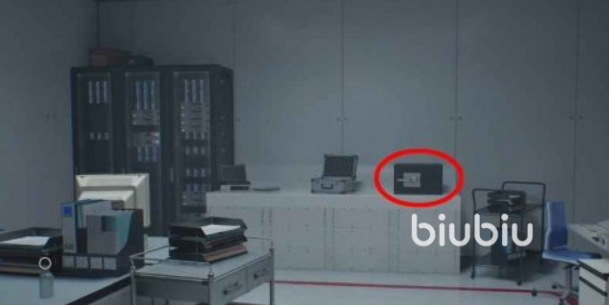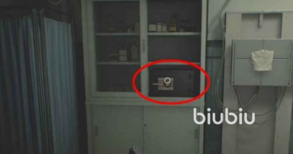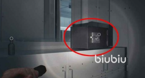 5、然后前往监控室,使用磁力钥匙打开楼上打字机旁边的红色门,进入之后房间为红色地板,找左侧第一扇绿色门,进去之后可以看到白色的文件柜,上面放着一个保险箱。密码分别为:癫狂难度用右20-左0-右70,如果玩其他难度,则使用左50-右60-左80。