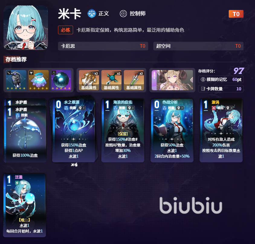 米卡作为体系润滑剂,核心卡“水之根源”提供150%攻击力的单体治疗,并返还2点Ap,配合被动“作战分析”可实现每回合稳定抬血+回能。更重要的是,该治疗动作必然触发特蕾莎的“暗影上膛”,形成稳定匕首生成源。其装备推荐森林三叶草或恶木的枝条,二者均出自审判之沼事件,分别侧重攻击力提升与队友增益,可根据队伍输出缺口灵活选择。艾美则定位为低耗高韧前排:初始Ap消耗仅需1点,不挤占队友行动资源;拥有主动减伤与多段护盾生成能力,可有效缓冲爆发伤害;其终结技“全金属风暴”在回合结束时自动发动,对全体敌人造成基于自身攻击力的AOE伤害,实现“无操作式清场”,大幅降低操作门槛。