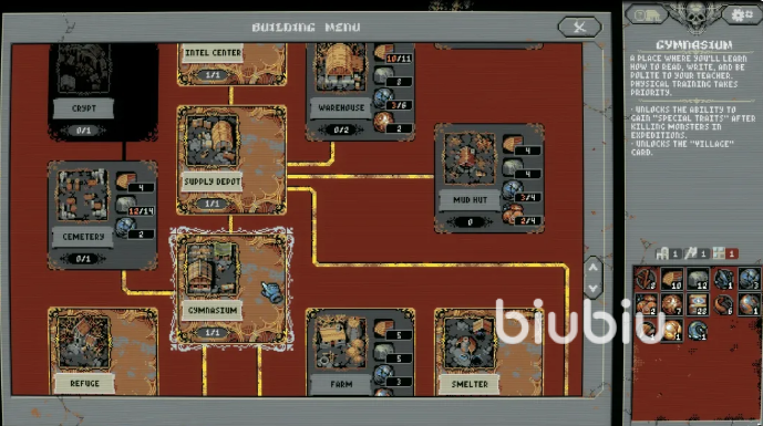 本作核心系统基于环境构筑卡牌体系:玩家通过拖放不同功能卡牌至环形地图路径沿线,实时改变地形结构与事件触发逻辑。例如部署“山地”卡可生成障碍与伏击点,“营地”卡提供安全休整与生命恢复,“吸血鬼庄园”卡则会在夜间激活敌对单位刷新机制。卡牌位置关系直接影响效果表现,相邻放置特定组合还可激活隐藏联动机制,强调空间规划与长期推演能力。