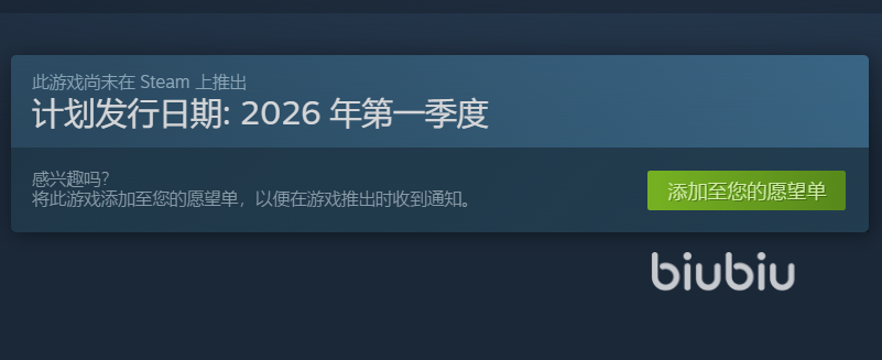该新游合作的平台是steam,现在可以看到商店页面已经登出了,其发售时间标注的是在2026年第一季度,最迟3月份大家就能玩到,满打满算最多就要等待一个月的时间。此时各位可以先将其加入心愿单,等待上线的时候能第一时间得到消息,完成购买下载的步骤。