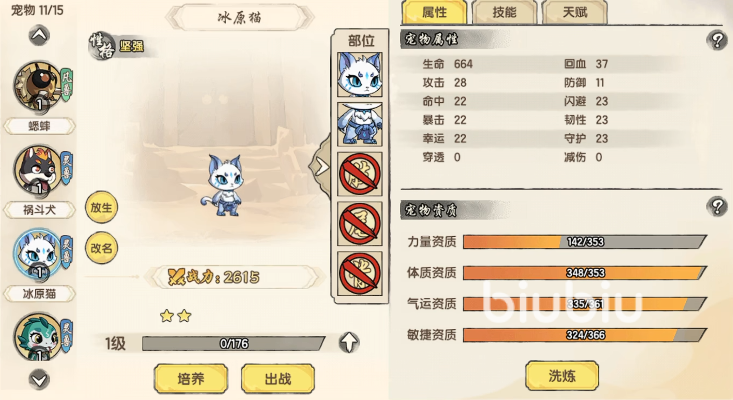 冰原猫是新手阶段最易入手的控制型灵宠,分布于森林场景。其核心技能“星芒庇佑”可在战斗中主动释放,触发后对范围内敌人施加持续减速效果。该灵宠无专属被动增益,但上场即生效的减速能力使其成为控场流阵容的理想前排辅助。若队伍缺乏硬控手段,建议优先激活冰原猫潜能,在敌方行动前抢占节奏;若已配置多段控制,则可将其作为补足减速覆盖率的战术补充。