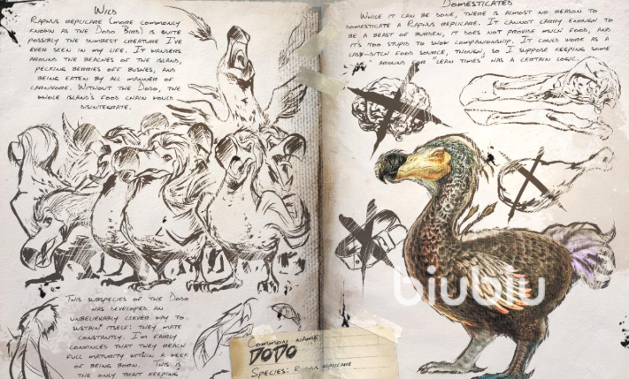首推生物为渡渡鸟,该物种广泛分布于海岸线及近岸灌木丛地带,属完全无攻击性的被动型生物。其食性以野生浆果为主,无法提供负重、骑乘或战斗辅助,故极少被主动驯养。多数玩家仅在急需基础食物资源时进行击杀,可稳定获取生肉与少量皮革。因个体生存压力低、繁殖周期短,渡渡鸟种群密度高,是前期最易获取的肉类来源之一。