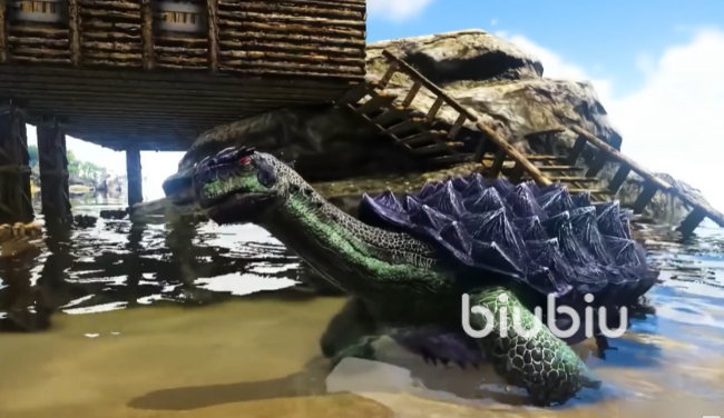 第二类为淡水碳龟,典型中立水栖生物,常见于湖泊、河流等淡水水域。移动速度缓慢但水中游动效率突出,龟甲结构提供可观物理减伤。作为早期可驯服的载具单位,其采集水利资源(如水、纤维)效率优于多数陆行生物。驯服难度较低,关键在于避免惊扰群体——单体攻击将触发整群仇恨响应,建议选择孤立个体并采用非激进投喂方式完成驯化。