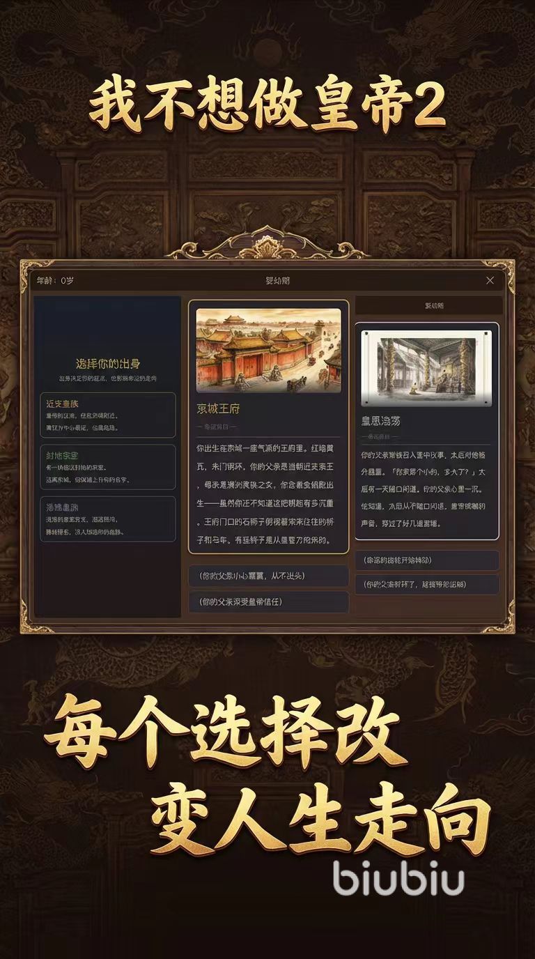 2026年03月04日 15:16 来源:小速《我不想做皇帝2》是一款以文字叙事为核心的休闲向角色扮演手游,主打高自由度剧情体验与多线分支选择。玩家可从多种出身背景中择一开启人生旅程,在朝堂权谋、后宫经营、阶层逆袭等主题交织的叙事框架中,逐步塑造专属的成长路径。每一次关键抉择都将切实影响角色命运走向——既可能登临九五之尊,也可能沦为阶下之囚,结局丰富且不可预判。