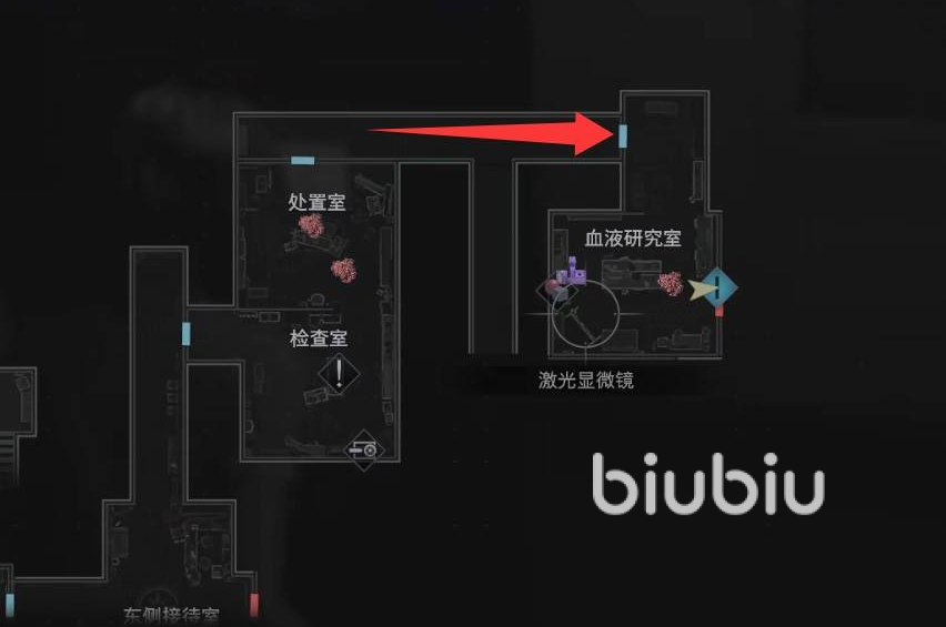 进入疗养院的血液研究室之后,可以在桌上拿到采血器道具,采集各处的血液之后即可做成合成物。血液样本分布在研究室跟处置室当中,推进时可搜集。然后来到实验室激光显微镜旁边,研究紫色血液样本,激活所有原子,即可解锁这两个配方,制作道具攻击丧尸们。