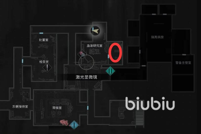 在疗养院等候室下方一点的位置这里有个储藏间,进入之后拿到血液样本,就可前去研究室用显微镜分析,按照下图的顺序激活原子,这样就能获取新的配方了。