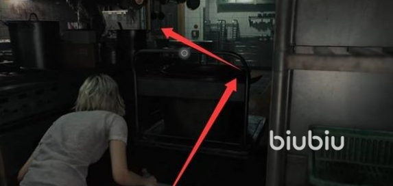 玩家通过刷门禁的方法进入到西侧厨房,这里就可以看到这个boss,不过目前手里面只有一发子弹。所以并没有实力去战斗,唯一的方法,那自然就是选择躲避通过,需要找掩体隐蔽,以免被敌人发现。同时还需要仔细的观察一下Boss的行动规律,他的行为其实会伴随着台词而出现变化,这也是玩家的关键时刻,一定要瞅准时机,然后迅速的通关。他的行动会有一个清晰的规律,例如当他在切菜的时候,就应该把挡路的推车推开。