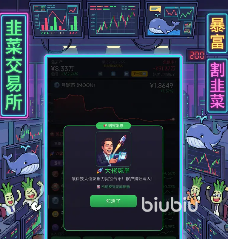 在这款游戏内,玩家需在虚拟市场中进行炒作、发币、加杠杆等不同的操作,而且也未大家融入了超多的突发事件,包括逆袭成长的路径选择等,大家的目标就是成为币圈大佬,通过精准操作、资源积累和策略布局,提升自身在虚拟市场的影响力,完成阶层跨越式的成长。只不过这些都离不开玩家有个稳定的网络加持,而biubiu就能帮助到大家,软件提供了手游免费加速体验,而且还有海量的游戏库资源给到各位,让广大玩家能去根据喜好来自由选择。
