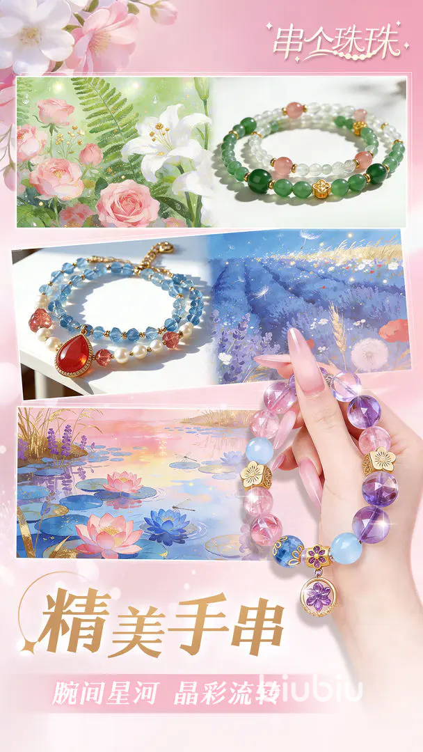 该游戏测试版本已于2026年1月29日正式上线,目前处于公开测试阶段,所有玩家均可下载体验。核心玩法围绕摊位经营展开:初期规模有限,但通过完成内置小游戏可逐步解锁水晶、玉石等高品质原材料,拓展材质种类、尺寸规格与色彩库,显著提升手串设计自由度与表现力。