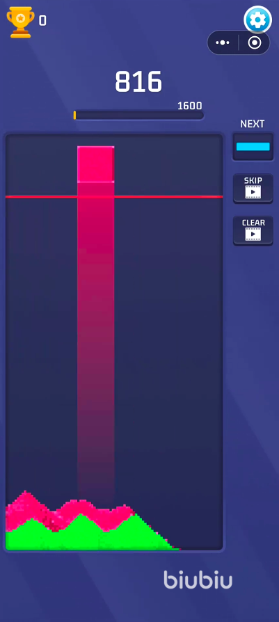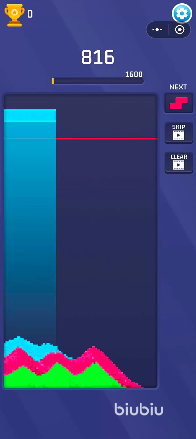 在俄罗斯方块衍生品类中,多数产品侧重复刻传统规则,而本作另辟蹊径,以“流沙化”为核心重构底层机制:方块落至红线区域后即转化为同色流沙粒子,当同一行内相同颜色的流沙单元横向连通达三格及以上时触发即时消除,并伴随连锁爆炸反馈与分数加成。该设计既保留了经典消除的确定性反馈,又引入了物理堆叠带来的随机变量,显著提升每局的策略纵深与重玩价值。