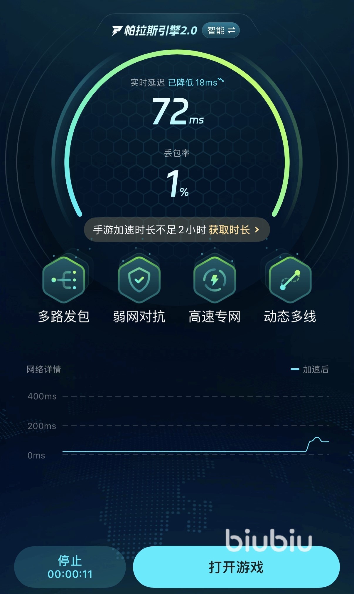 玩家们可能在端游的加速上对于biubiu的加速模式很了解了,其实biubiu对于手游的加速效果也是很不错的,同样的引擎技术,同样的加速模式,同样都是阿里巴巴灵犀旗下推出的软件。所以它对手游的加速也是相应很快,同时还能后台自动切换,自动运行。关键是选择biubiu来对手游可以实现免费加速,只要每天看几个视频就能累积免费加速的时长,最多可以领24小时,虽然0点清零了,但是第二天又可以通过看视频来继续累积时长。