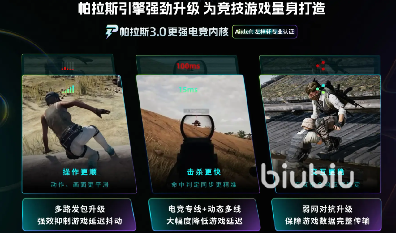 很多人在下载游戏时觉得下载速度或是上传速度比较慢是正常情况,但在开启biubiu后其自研帕拉斯3.0引擎就能够改善这种问题,即便你是校园网或是带宽比较低,也能在弱网的情况下保证不出现网络波动以及提供低延迟服务,所以这份黑科技的动态捕捉能力影响到的是整个网络,同样能让你在下载游戏时至少提高50%的速度,如果中途发生任何波动都会自动切换另外一个高速节点,让运行趋于稳定状态。