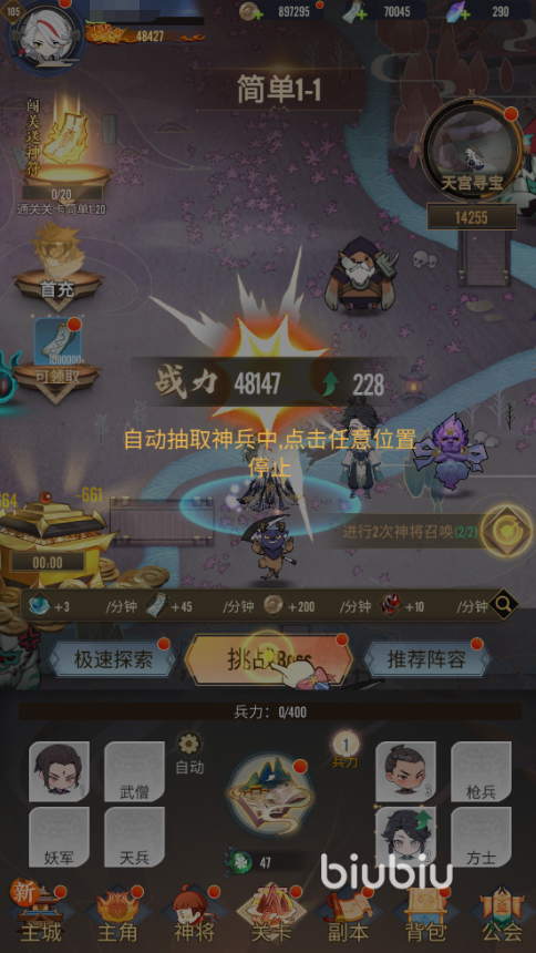 约20分钟熟悉基础操作后,即可开启副本系统。心魔试炼为优先级最高的日常副本,其掉落物专用于神将等级提升;同时每关通关固定奖励仙豆,可用于抽取神兵——高等级神兵带来的属性增幅直观且稳定。另一重点副本为山河社稷图,稳定产出玉龙衡魂丹,该道具为主角突破专属材料,突破后主角基础属性成长率极高,投入回报比全游戏领先,切勿囤积。