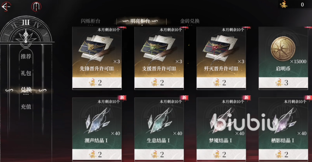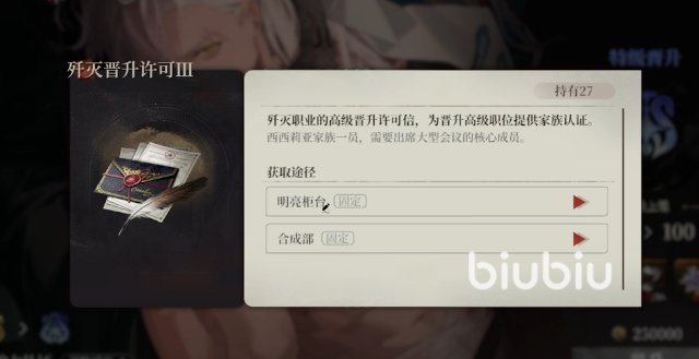 2、商店兑换:非付费玩家可通过游戏内【明亮柜台】以特定材料兑换晋升许可。该道具在柜台中定期轮换上架,但兑换所需材料稀有度较高,且整体掉落率偏低,建议结合日常资源积累进行长期规划。