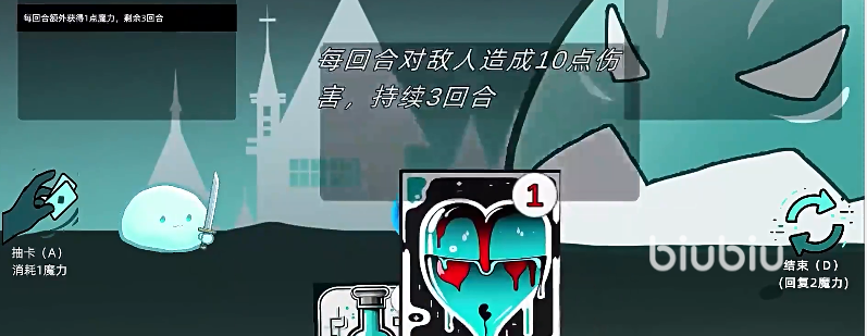 史莱姆Boss的设计极具颠覆性:全属性直接伤害免疫、高额基础血量、持续再生机制,使其在传统回合制框架下近乎无解。唯一突破口,正是DOT机制本身——每次成功施加DOT效果,系统将从初始卡池中随机抽取一张新卡加入手牌。随着战斗推进,卡组结构自然向“高频率叠层—稳定跳伤—长效腐蚀”方向演化,形成动态成长型构筑体验。这种“边打边建”的过程,既是策略重心,也是核心乐趣所在。