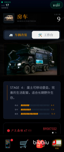 《末世:我有一辆房车》主打“重生+囤货+房车改造”三位一体玩法。游戏开局即进入末日降临前7天倒计时,玩家携带前世记忆与初始资金,核心目标明确:高效采购物资、科学规划空间、持续升级载具。在资源极度受限的废土环境中,每一次决策都将直接影响生存周期与生活质量。