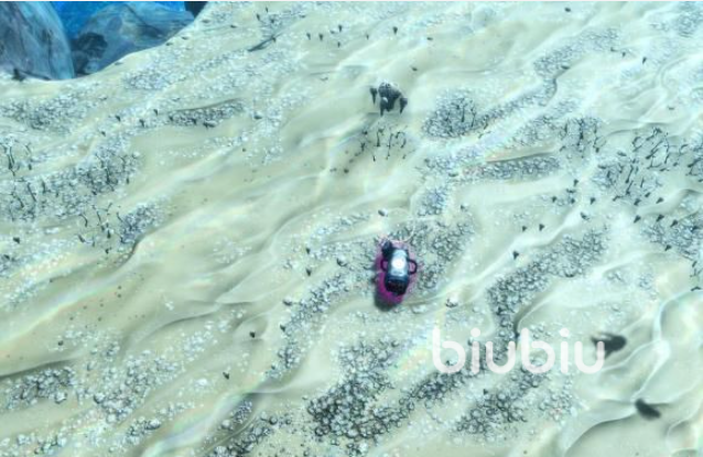 行进途中将触发物资提示事件,该区域存在水翼鱼活动,需注意规避突袭。在标记物资点附近的海藻丛中,可采集重力陷阱碎片与建造舱碎片,集齐后即可解锁信标制作配方。建议第一时间制造并部署信标,便于后续远距离返回与坐标定位。