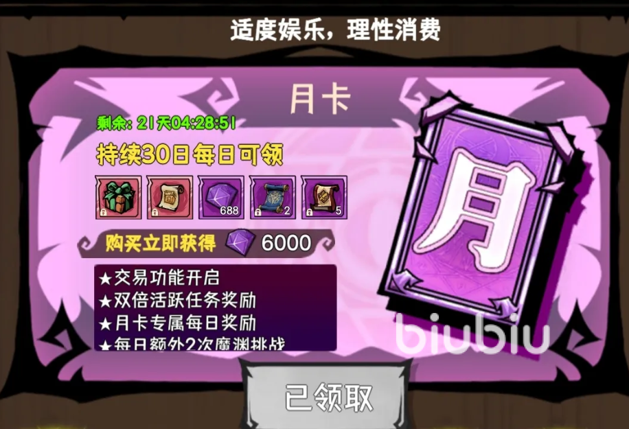对于希望深度参与游戏生态的玩家,30元月卡是性价比突出的基础选择。开通后即可解锁摆摊交易功能,每日领取解绑符,并稳定获取钻石、副本门票等实用资源。该档位实质构成进入完整游戏体系的必要门槛,以较低成本开放核心社交与成长模块。
