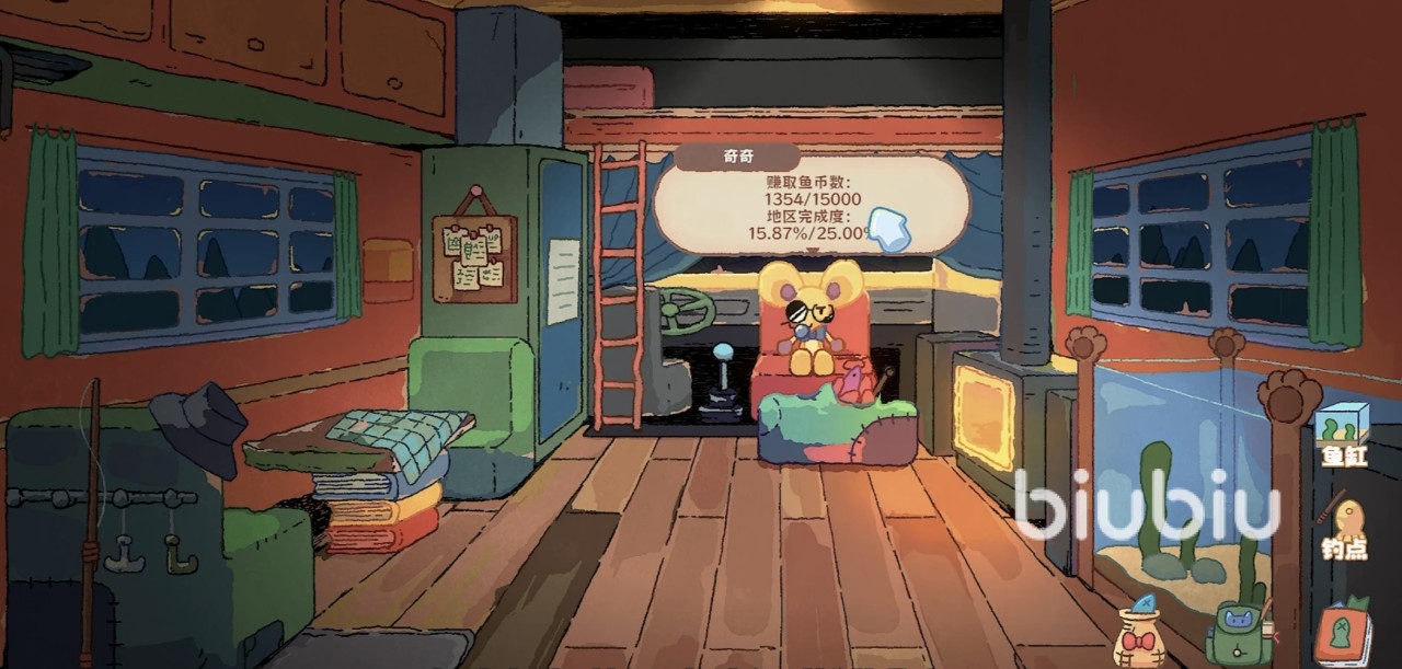 鱼缸不仅是观赏空间,更是可持续收益系统的核心模块。放入鱼类后,其将自主游动并按设定速率生成鱼币,扩容鱼缸可提升容纳上限与单位时间产出效率。多鱼共游的生动画面强化了养成沉浸感,同时延伸出“养鱼—增益—再垂钓”的正向循环机制。此外,游戏中设有多个NPC角色,玩家可通过对话推进支线叙事,协助他们完成心愿任务,在互动中逐步揭开世界观背后的隐藏往事与星球演化线索。