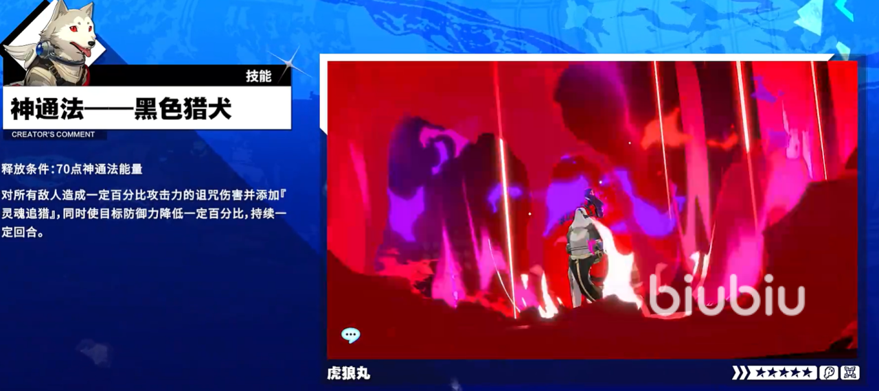 当“灵魂追猎”已存在时,使用任意面具技能攻击目标,可进一步令其进入对应属性的适应性降级状态,并同步触发全队增益“忠犬的咆哮”,提升攻击力、最终伤害及神通法伤害。由此可见,虎狼丸并非传统意义上的输出担当,而是以状态调度与机制联动为核心职能,通过系统性强化队友作战效能,实现整支队伍战力层级的整体跃升。
