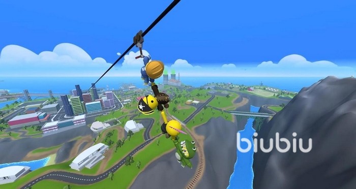 游戏支持最多4人联机,涵盖线上匹配与本地同屏两种模式。多人协作过程中,物理规则放大了配合难度,也催生了大量即兴互动:多人挤入小型载具后急转甩飞、分工搬运巨型道具时集体失衡、在狭窄空间内反复碰撞弹跳……这些不可预测的混乱场景,成为持续激发笑声的核心驱动力。