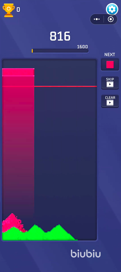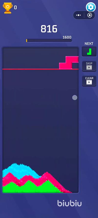 俄罗斯流沙是近年来少有在俄罗斯方块IP基础上实现系统性突破的作品。它跳脱出传统堆叠与旋转逻辑,在保留核心操作手感的同时,引入全新“流沙动态消除”机制。游戏整体采用高辨识度像素美术风格,配合红、黄、蓝、绿四色可操控方块,强化视觉节奏与操作反馈。每行设置三个独立槽位点,当同色方块落入同一横排对应位置时,即触发自动消除并激活Blast特效,形成分数跃升节点。