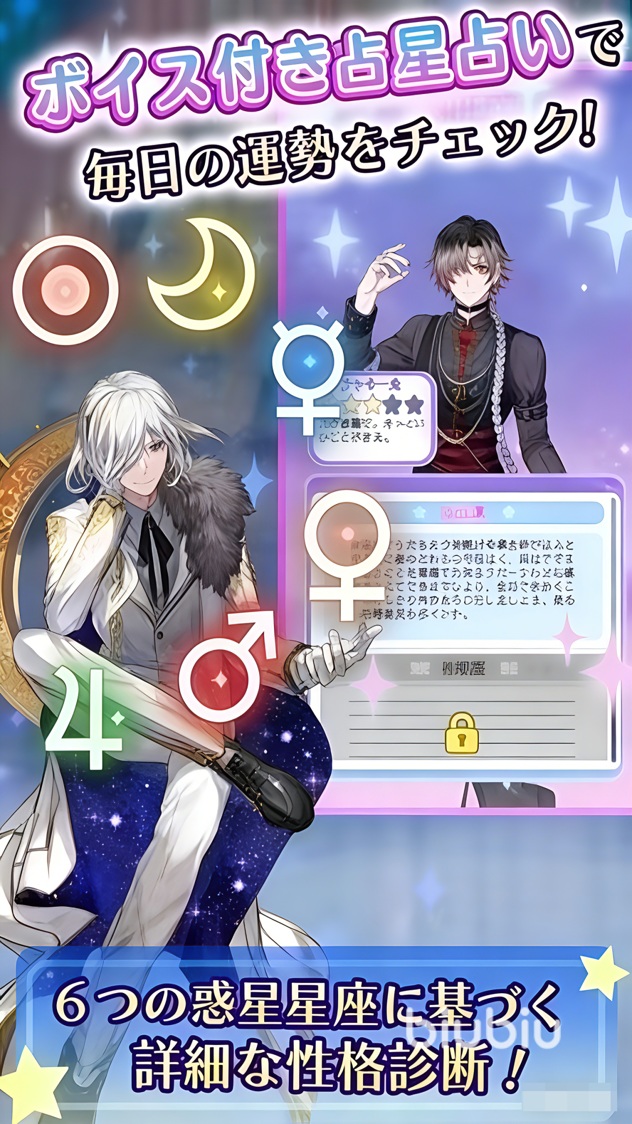 至于游戏特色,其核心亮点在于双维度文化建模:一方面,每位玩家可绑定专属星座身份,每日接收由江口拓也、斋藤壮马等一线声优演绎的个性化星座播报,涵盖当日运势趋势、情感提示与生活建议;另一方面,系统在手机桌面提供轻量化窗口组件,以实时文字流形式动态呈现星象变化,兼顾实用性与趣味性。