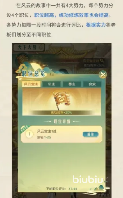 活动起始需完成“拜师”仪式,正式拜入步惊云门下,方能解锁修炼体系。修炼以真气积累为核心驱动,真气达标后可提升境界等级。系统支持离线挂机自动修炼,全程不间断;若希望加速成长,还可消耗体力请求师傅亲自指点,该方式真气获取效率显著更高,尤其在中高境界阶段增益更为突出。此外,势力职位等级直接影响修炼速度——职位越高,单位时间真气产出越强,因此积极参与势力建设与排名竞争,是提升整体成长效率的重要策略。