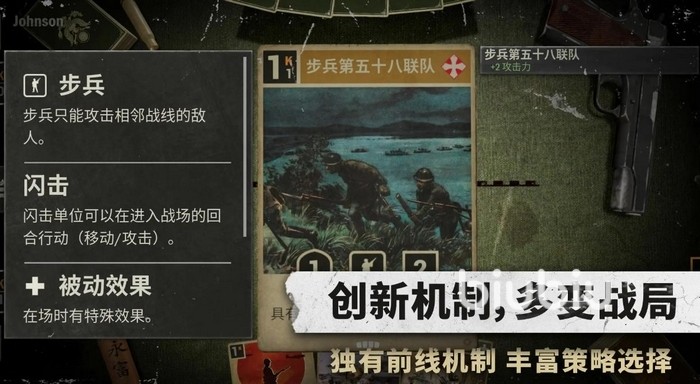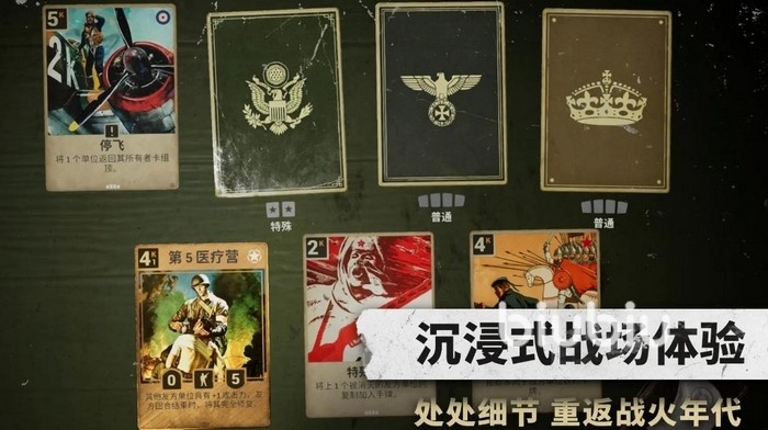 每回合开始阶段,玩家将执行抽牌、增加指挥点、评估战场态势三项基础操作。单位卡涵盖步兵、坦克、战斗机等真实二战兵种,各具独特攻击规则与移动逻辑;指令卡提供一次性战术效果;支援卡与事件卡则分别强化持续作战能力或触发特殊局势变化。胜负判定标准为任一方总部防御值归零。