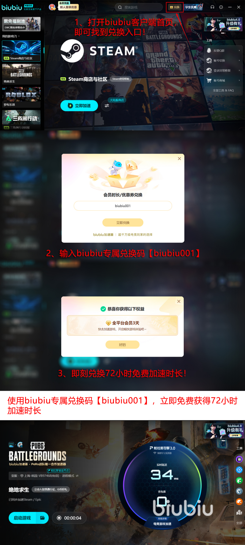 biubiu加速器已成为《绝地求生》玩家群体中广泛认可的网络优化方案。该工具由阿里巴巴灵犀互娱旗下团队研发,与九游、交易猫同属同一技术生态体系。其核心优势在于智能识别PUBG服务器节点,动态调度最优传输路径,显著降低跨区连接中的丢包率与抖动幅度。实测数据显示,使用后游戏资源加载速度提升明显,有效规避因网络波动导致的启动黑屏与中途掉线。目前新用户可享多重免费体验权益:注册即赠24小时加速时长;输入专属兑换码【biubiu001】还可额外领取3天连续使用权;首期累计最高可获得96小时免付费加速服务。