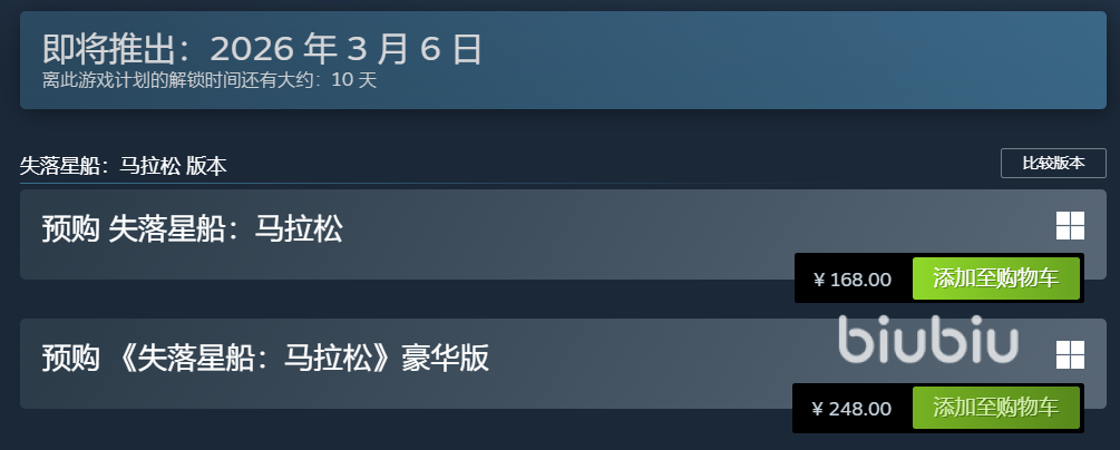 综上,《失落星船马拉松》Steam版定价信息已明确:基础版168元、豪华版248元。当前开放预购,参与预购可享限定奖励。多档位数字版内容设计,兼顾不同消费预期与体验需求的玩家群体。