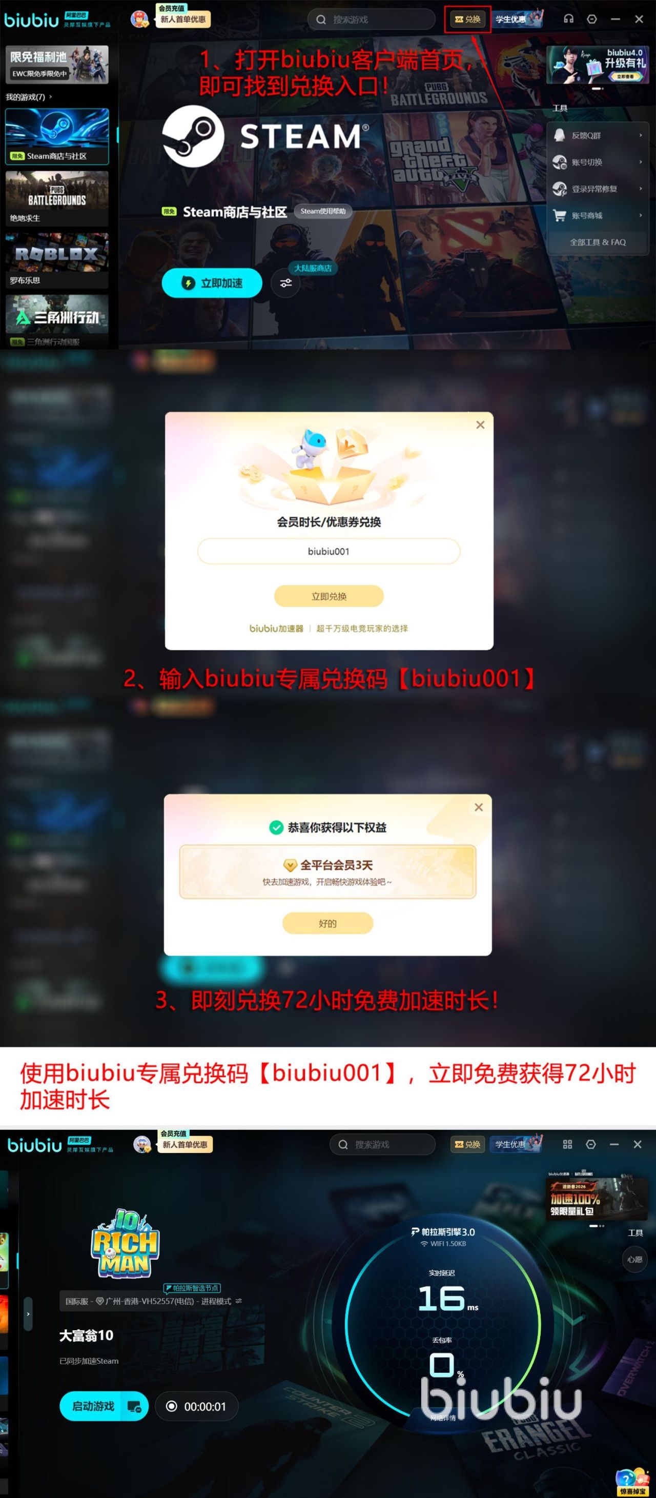 biubiu加速器是阿里巴巴灵犀互娱旗下专注游戏网络服务的技术产品,与九游、交易猫同属该体系。其搭载帕拉斯3.0智能加速引擎,可深度识别《大富翁10》的UDP通信特征并实施毫秒级路径优化。该方案已通过职业赛事级验证:既是PUBG冠军选手小叮当(XDD)日常训练指定工具,亦为Pero战队官方合作加速品牌,具备面向高并发实时交互场景的工程化保障能力。当前用户可在加速器内输入通用激活码【biubiu001】,立即领取3天免费加速权益;新注册用户额外获赠24小时专属时长,累计可达96小时无门槛使用。