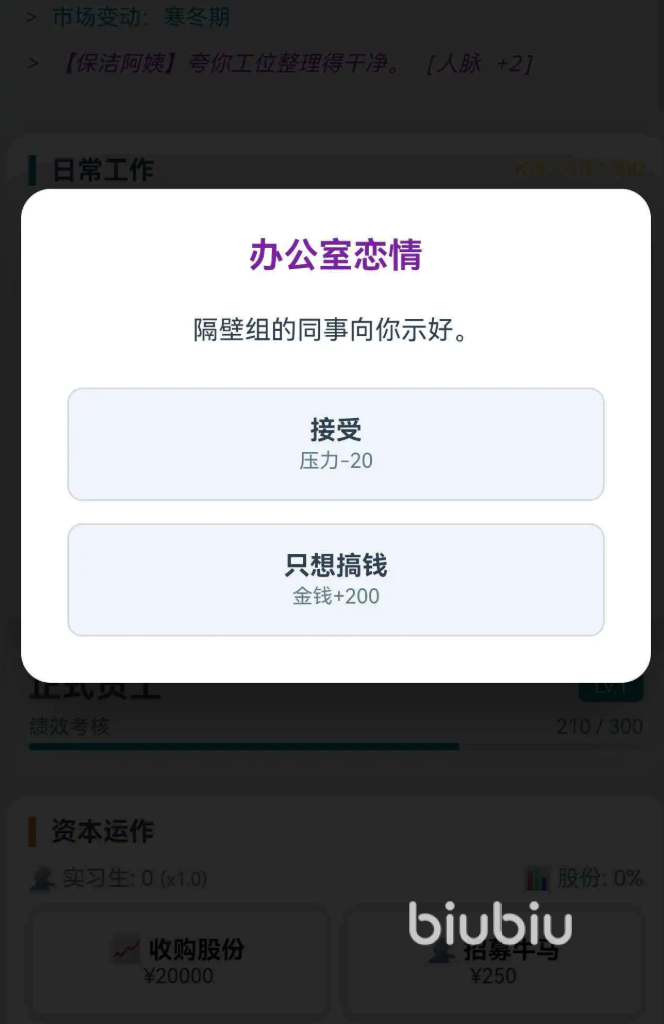 游戏核心机制高度还原现实职场逻辑:每日打卡即“晨课吐纳”,周报撰写是“心法参悟”,OKR拆解如同“功法推演”,而年度绩效面谈则被设计为一场高危“心魔试炼”。玩家需在有限精力值下平衡学习技能、维系人脉、应对突发需求,并在关键节点做出职业路径选择——是深耕技术走“算法飞升流”,还是转向管理修习“组织凝神术”,抑或另辟蹊径开启“副业炼丹线”。