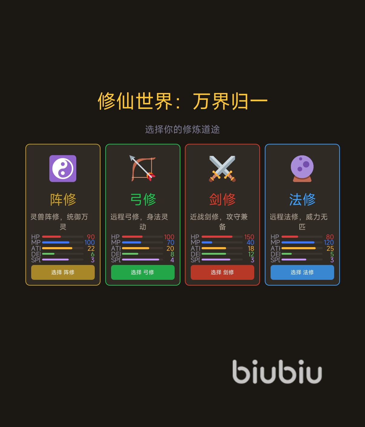 游戏主界面清晰划分功能模块,新手引导极为简洁。玩家可在法修、剑修、弓修、阵修四大职业中任选其一,选定即刻进入地图。全程采用全自动战斗机制:角色自动寻敌、智能切换战斗状态,战败后亦可原地复活,仅需短暂冷却时间即可再次投入战斗。