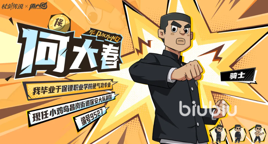 何大春担任前排战术控制角色。“保镖飞踢”允许其跃至范围内任意空格位置,对1名敌人造成1次物理伤害,并100%附加“破甲”状态,持续2回合;“保镖守则”可对3格内全部敌人发动1次物理伤害,且有85%概率附加1回合“嘲讽”;其秘法效果为:在非自身回合行动期间,所受伤害降低。