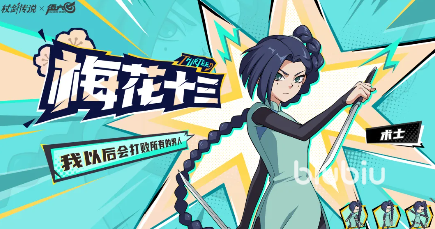 梅花十三为风属性范围输出兼印记型角色。“梅花镖”可对自身范围内的1名敌人造成1次风属性伤害,并施加1层“梅花印记”;释放后有80%概率自动重施该技能;“双凤印月”则作用于身前扇形区域所有敌人,造成2次风属性伤害并各附加2层印记;其秘法效果为:在首回合中,每次造成伤害时均可免疫本次伤害并触发位移闪避。