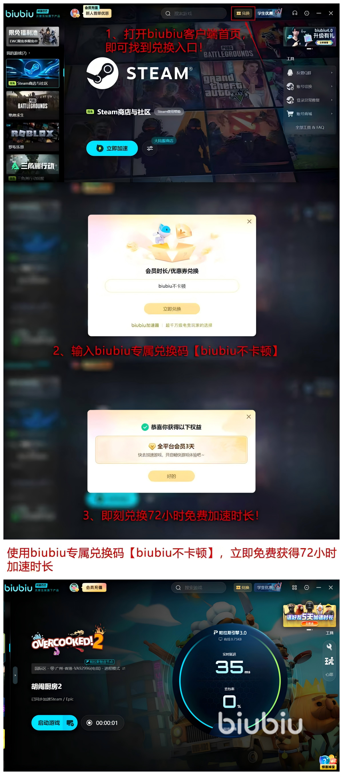同时使用【biubiu不卡顿】口令能够获取72小时的加速时间,累计新人一定获取的加速福利24小时,总计能够获得96小时的免费会员时间,这个时间足够一位小白用户晋升为资深的用户了,绝对非常靠谱好用的一款软件。