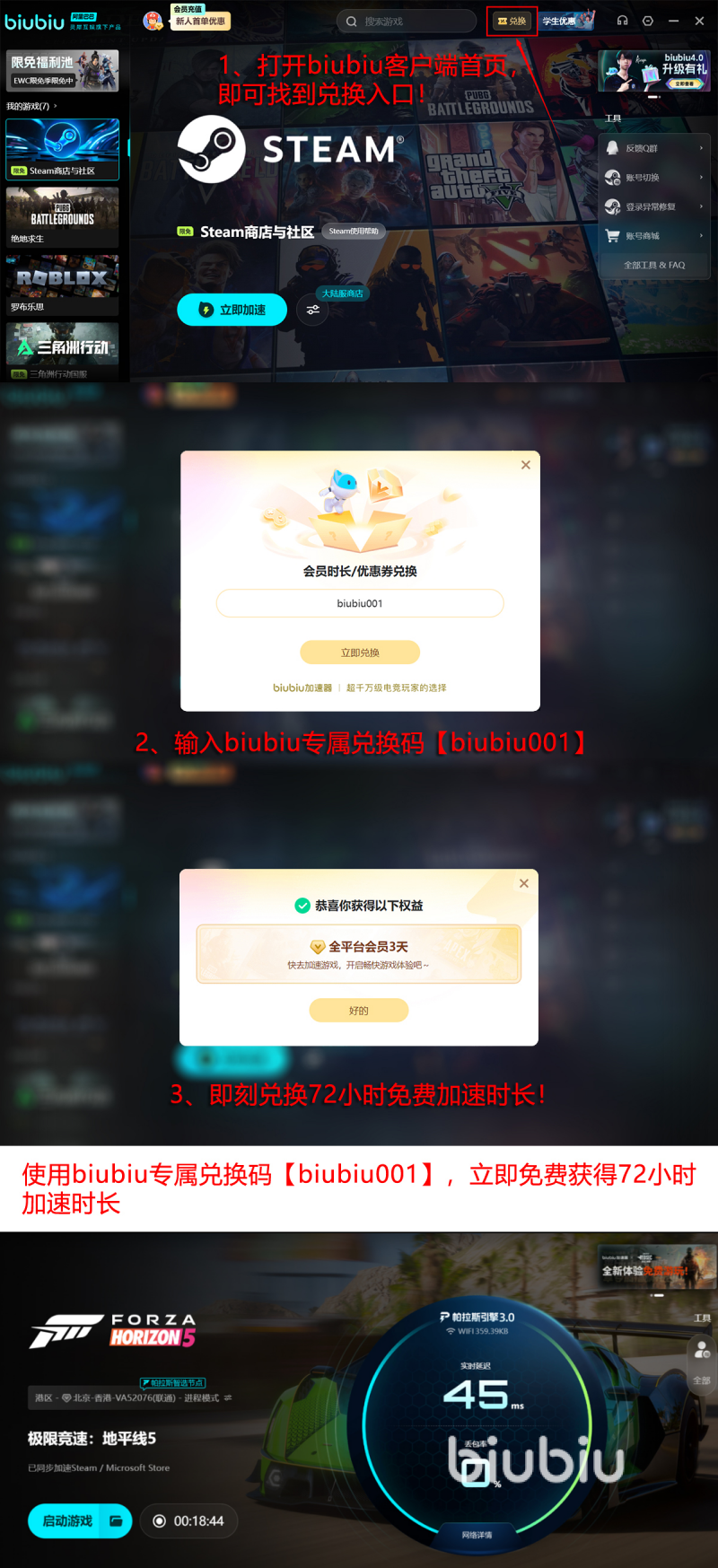 biubiu加速器这款加速器就能有效支撑得住游戏联机的需求,作为PUBG冠军选手小叮当所认可的一款加速器。还有阿里巴巴灵犀互娱大厂技术,这款产品的专业性真的是不需要多说的。尤其是自研的帕拉斯3.0引擎,可以智能的匹配最优的节点,在根源上就能解决闪退的问题,让游戏拥有更好的联机体验。现在还有免费的加速时长可以领取,所有的用户都可以通过【biubiu001】获取3天的免费加速时长,而如果是新用户,还可以额外的解锁24小时免费礼包。这两个并不是单独使用,可以放在一起,最终可以免费96小时。