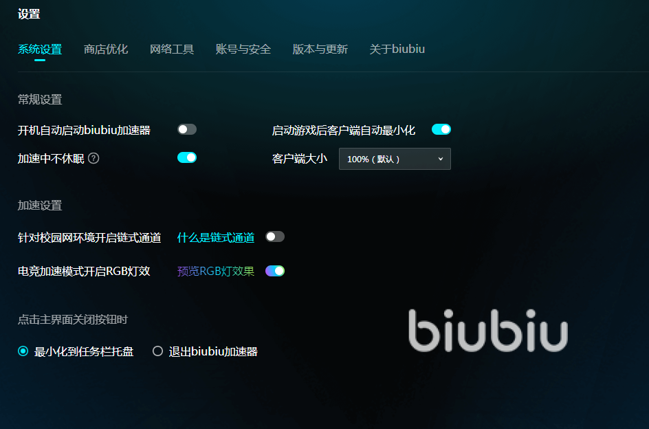 biubiu就是大家的首选软件,biubiu不占后台资源,运行之后不会让电脑后台变卡,它安安静静加速不弹窗,还能启动后最小化到后台,不干扰其他软件也不妨碍大家游戏操作。biubiu支持网速可视化,在页面就能查看流量数据,延迟数、丢包率是多少都清清楚楚,还帮大家记录好加速时间,方便玩家们安排游戏时间劳逸结合。