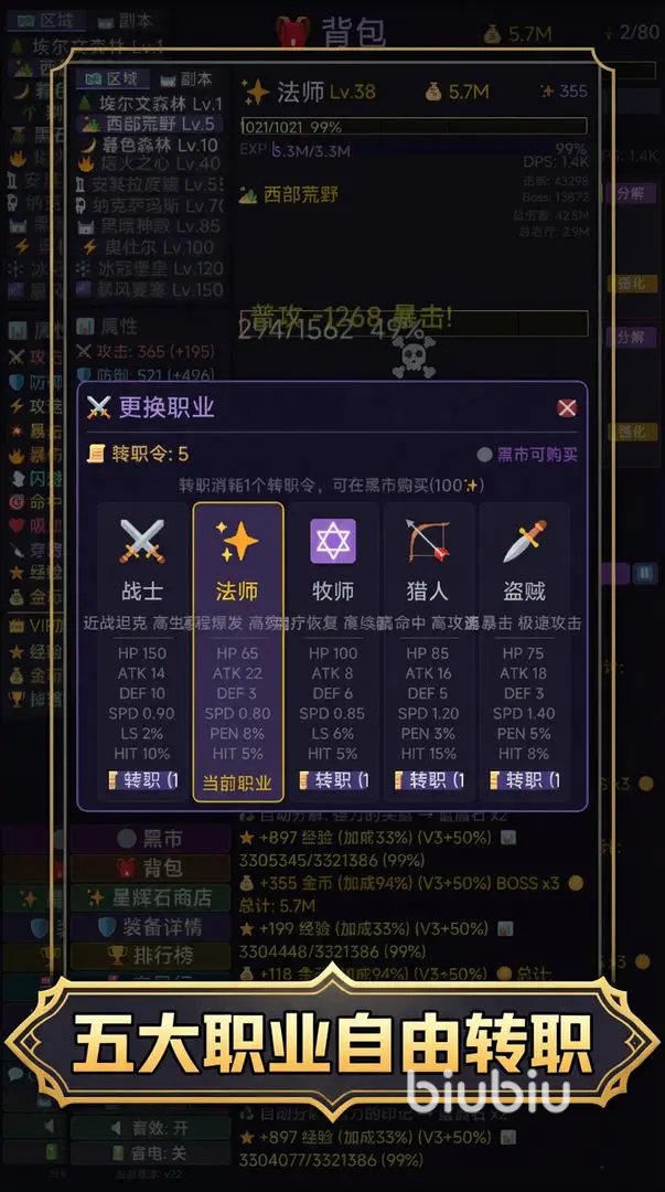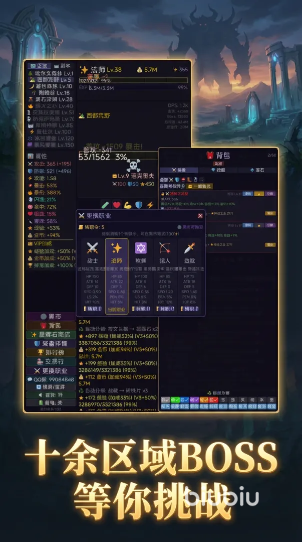 游戏提供五大初始职业:战士、法师、牧师、猎人与盗贼。战士职业生存能力突出,近战压制稳定,是新手入门的理想选择;法师职业拥有高额远程群体伤害,操作门槛适中;牧师专注团队治疗与状态恢复,显著提升队伍持续作战能力;猎人以高命中率与稳定单体输出见长;盗贼则具备极快攻速与爆发暴击特性,属于进阶向高操作需求职业。所有职业均支持自由转职路径,策略深度丰富。