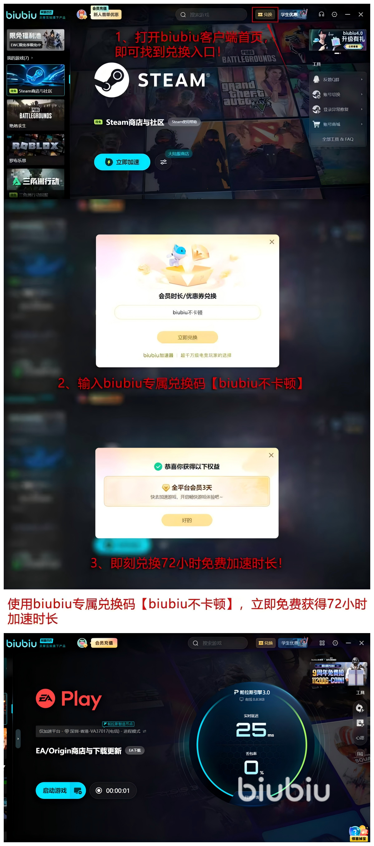 可以使用【biubiu不卡顿】口令非常有用保证各位72小时能够轻松的获取,新人用户能够直接获取的24小时也能叠加,总计能够获得96小时的加速效果,这个福利非常人性化,保证能让各位稳定体验一下,感觉好用再购买,不强买强卖。