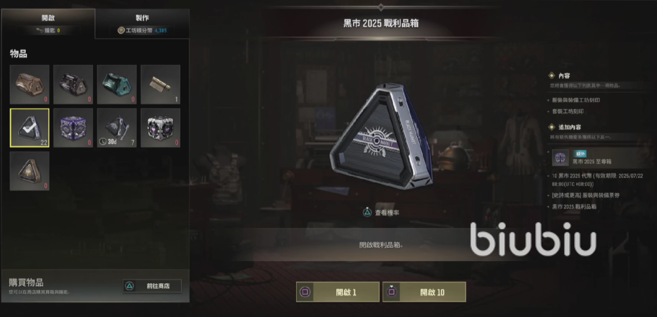 其次,还有些玩家喜欢抽盲盒的快乐,也可以去买黑市战利品。比如2025年的黑市箱子售价是250~12500G都有,当然非常考验大家的手气,运气好的时候可以获得史诗级甚至更高的服装和装备票券。不过这仅局限于G币非常多的情况下才去买,不然不建议赌手气。