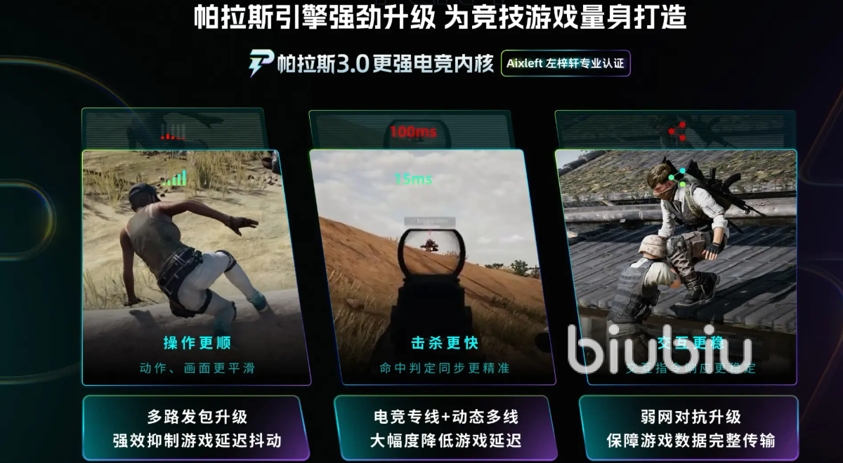 biubiu加速器之所以能成为行业内评价综合性能第一的pc加速器,核心就是他的技术是有阿里巴巴灵犀互娱背书的,而且遥遥领先的自主研发了帕拉斯3.0的加速引擎,实时探测最佳的网络动态情况并优化网络传输路径。可以说是不管在面对职业赛事还是普通玩家的使用场景,都能游刃有余手拿把掐啊。