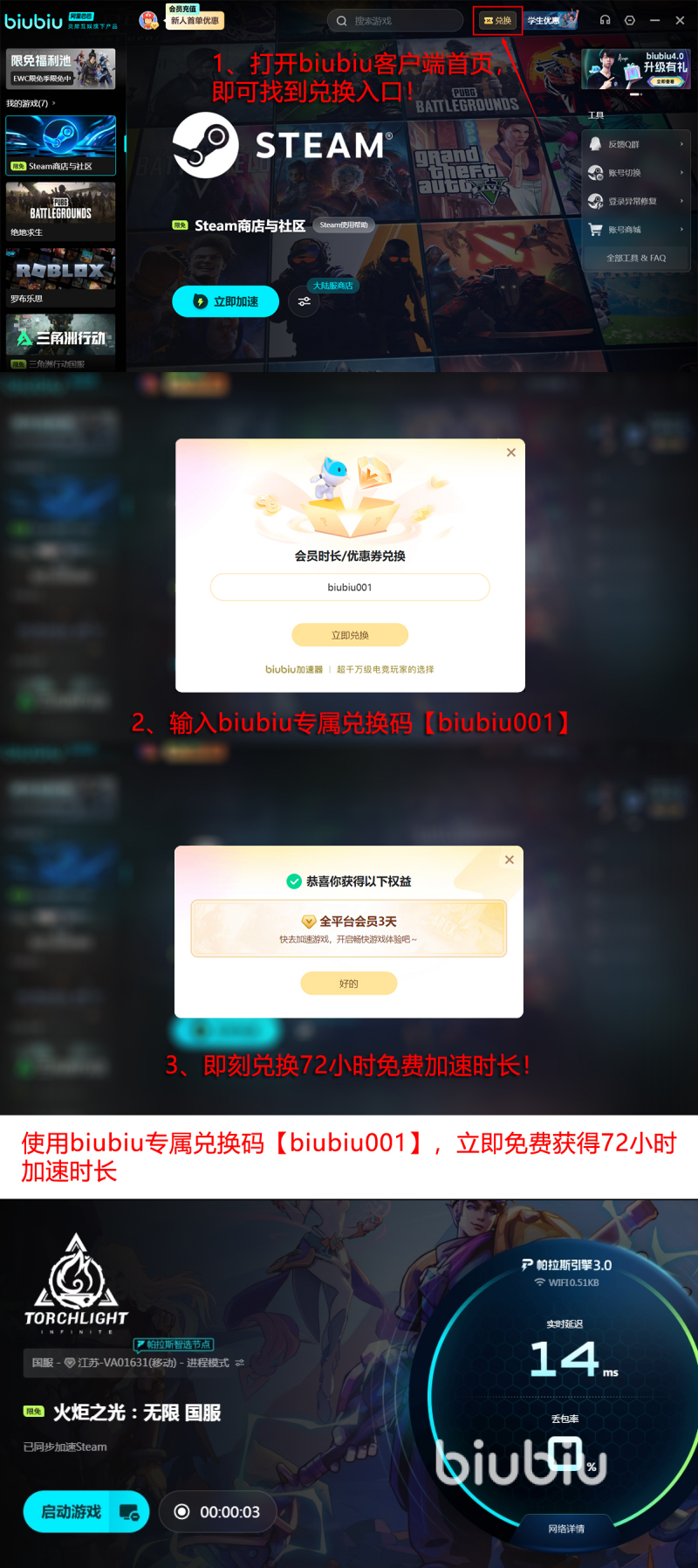 biubiu加速器这一款加速器还是比较靠谱的,并不是吹牛,有阿里巴巴灵犀互娱大厂技术,还有帕拉斯3.0引擎。加速稳定性是比较出色的,而且还是PUBG冠军选手小叮当所指定的一款加速器。在行业内的影响力比较出色,可以有效解决网络卡顿等问题。现在还有免费福利可以领取,只要大家使用【biubiu001】就能获取3天的免费加速时长。新老用户全部都可以使用,对于新用户而言,还有一个24小时的礼包。两者放在一起就可以免费96小时。