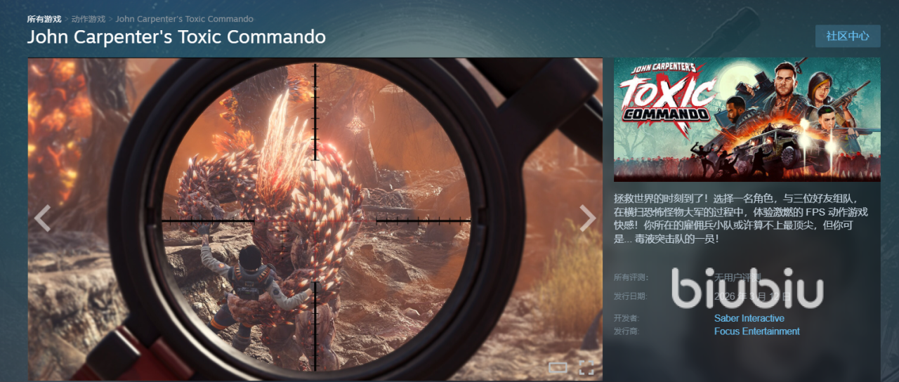 目前steam上商店页面是正常开放的,但是用中文查找不到,必须输入英文名称《John Carpenter's Toxic Commando》才能搜索到。等进入页面之后,可以看到有3个发售版本,各位可以根据自己的接受价格购买对应版本,在3月12日的时候就能正式开启挑战了。
