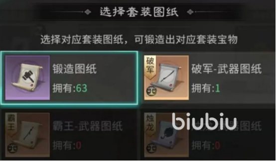 成功锻造的前提是齐备关键资源:锻造图纸与基础材料缺一不可。图纸分为两类——普通随机图纸与指定套装图纸。使用随机图纸锻造,产出宝物所属套装为系统随机匹配;而指定图纸则能精准生成对应套装中的某件宝物,大幅降低凑齐两件套或四件套的时间成本,提升养成效率。