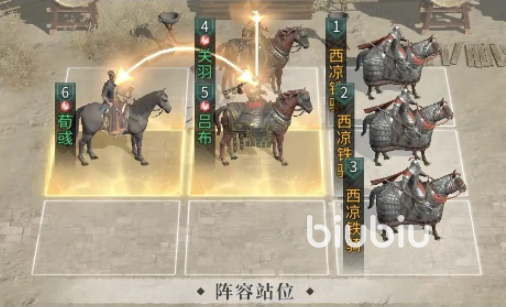 荀彧则为全队提供关键战略支撑:其主动技能可同步提升吕布的攻击力与生存韧性,被动效果进一步强化追击频率与命中率。实战布阵建议将吕布、荀彧、关羽(或张飞)统一部署于追击格位,确保技能链顺畅衔接;兵种配置推荐前三排全部搭载铁骑单位,在维持高物理穿透与爆发的同时,依托兵种特性增强前排容错率与整体抗压能力。