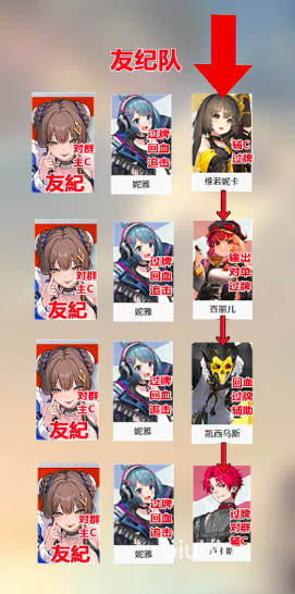 新手玩家或装备/命座尚不齐全阶段,建议优先采用「生存续航稳健队」:友纪 + 莉莉丝 + 奥利维亚。莉莉丝提供持续团队治疗与负面状态清除,有效保障输出环境稳定性;奥利维亚生成的元素护盾可吸收大量伤害,并具备抗打断特性,为友纪创造安全的站桩输出空间。该配置不依赖极限操作与精准反应时机,容错率高,适合熟悉角色机制、积累实战经验的过渡阶段使用。若暂缺某位角色,亦可依功能定位进行同类型替代(如治疗位可用其他持续回血角色,护盾位可换用具备强生存增幅的辅助)。